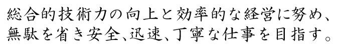 創業時から常に、専門業者として安全を最優先に技術の向上と品質の向上に取り組み、お客様や地域社会に信頼頂ける会社を社員一丸となり目指してまいりました。